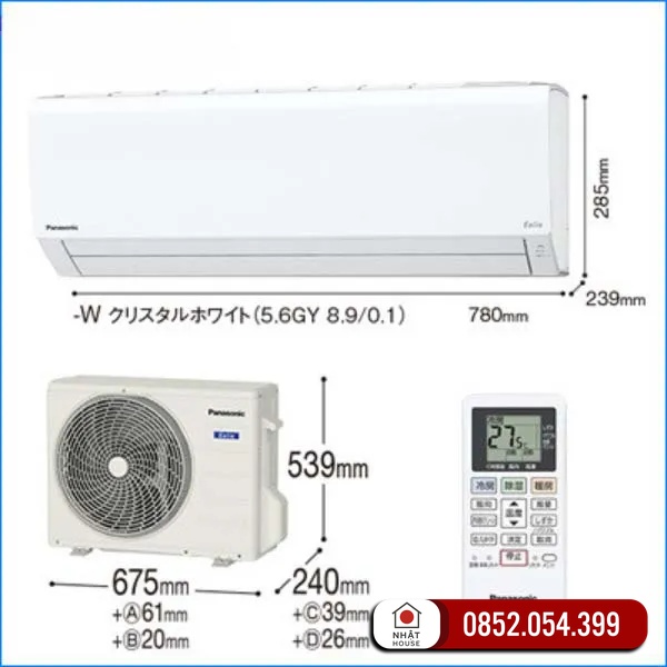 | Kích thước | Dàn nóng: 539 x 675 x 240 mm; Dàn lạnh: 285 x 780 x 239 mm |