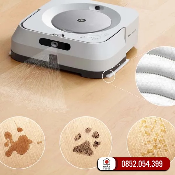 BraavaJet m6 có khả năng làm sạch nhiều loại sàn như sàn gỗ, sàn gạch, và sàn đá.