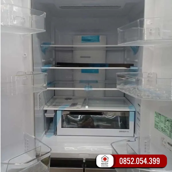 Tủ Lạnh Hitachi R-HWC54T với thiết kế 6 cánh và dung tích lên đến 540L, tích hợp nhiều tính năng hiện đại như ngăn cấp đông mềm, công nghệ Inverter tiết kiệm điện, và bảng điều khiển thông minh, giúp thực phẩm của bạn luôn tươi ngon.
