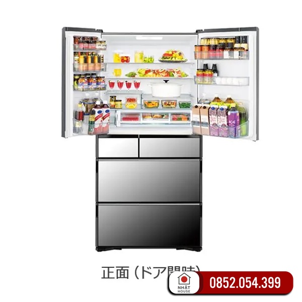 Tủ lạnh Hitachi R-WXC74T với 6 cánh và mặt kính cường lực, giúp tối ưu hóa không gian lưu trữ nhờ vào nhiều ngăn nhỏ, ngăn mùi hiệu quả và hạn chế thất thoát nhiệt mỗi khi mở cửa.