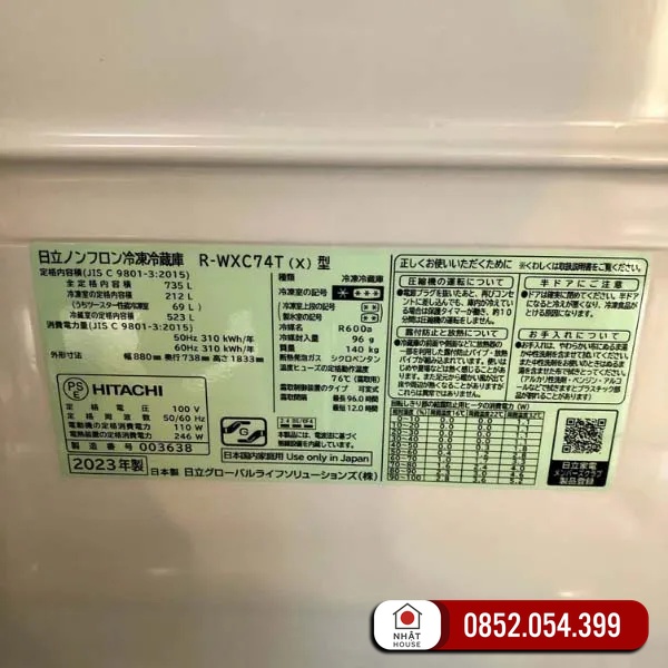 Thông số kỹ thuật của Tủ lạnh Hitachi R-WXC74T